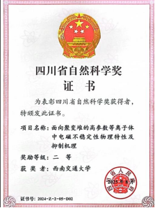 四川省科学技术奖由四川省人民政府设立,是全省科技领域最具权威性和影响力的奖项之一,覆盖自然科学、技术发明和科技进步等多个类别。近年来,西南交大必赢贵宾会3003官网坚持开展有组织科研,等离子体物理团队瞄准磁约束核聚变关键问题,持续开展了高参数等离子体不稳定性物理特性及抑制机理的前沿物理研究。本次奖项的获得是必赢贵宾会3003官网坚持开展有组织科研的充分体现,同时也为学校“双一流”建设贡献力量。未来,学院将大力弘扬爱国、创新、求实、奉献、协同、育人的科学家精神,坚持有组织科研,以科技创新推动学校高质量发展。