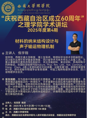 为庆祝西藏自治区成立60周年,西藏大学理学院于2025年6月9日举办了2025年度第4期学术讲坛。必赢官网倪宇翔教授在本次讲坛上作题为“材料的纳米结构设计与声子输运物理机制”学术报告。