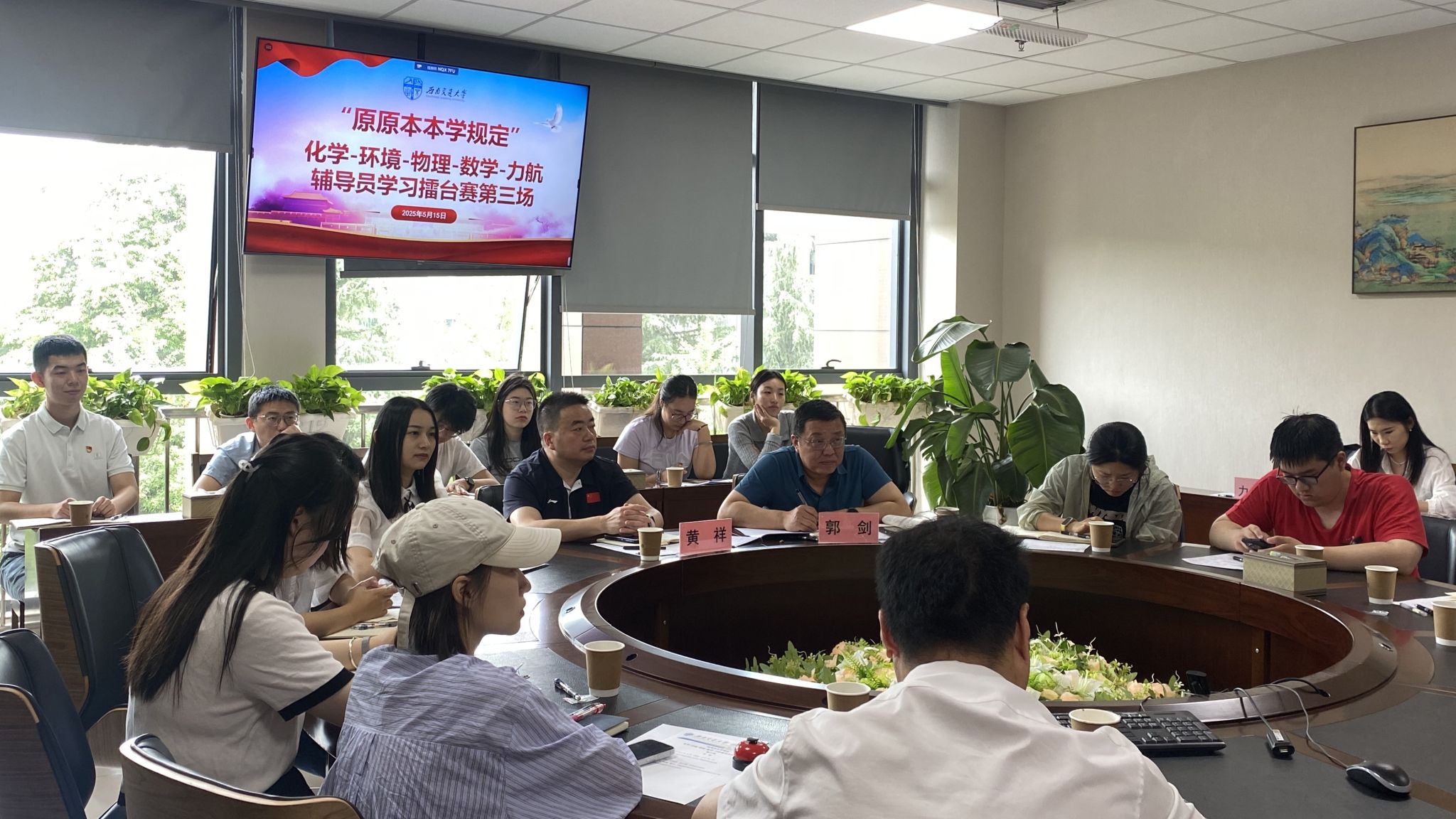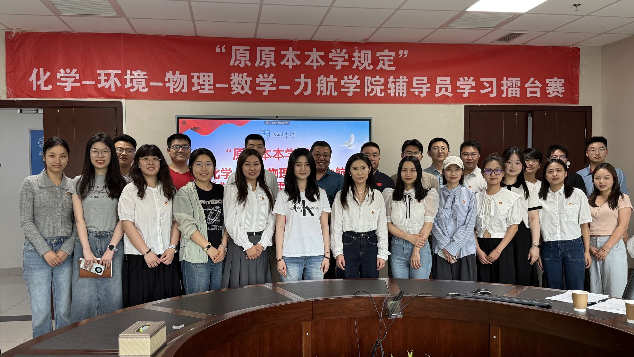 2025年5月15日下午,由化学学院、环境科学与工程学院、必赢贵宾会3003官网、数学学院、力学与航空航天学院联合举办,必赢贵宾会3003官网承办的“原原本本学规定”辅导员学习擂台赛第三场在X30345会议室顺利举行,数学学院党委副书记黄祥、必赢贵宾会3003官网党委副书记郭剑及五个学院学工组辅导员老师参加活动,必赢贵宾会3003官网杨昊戬主持活动。
