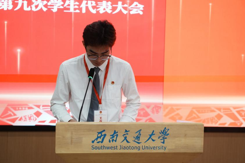 6月5日,必赢贵宾会3003官网第九次学生代表大会在犀浦校区图书馆一号报告厅顺利召开。经过前期推选,学院99名学生代表参加会议。学院团委副书记(主持工作)杨昊戬,副书记陈骥清,学生会指导老师夏荣林,校学生会主席团成员杨悦,兄弟学院学生会主席团参加开幕会。