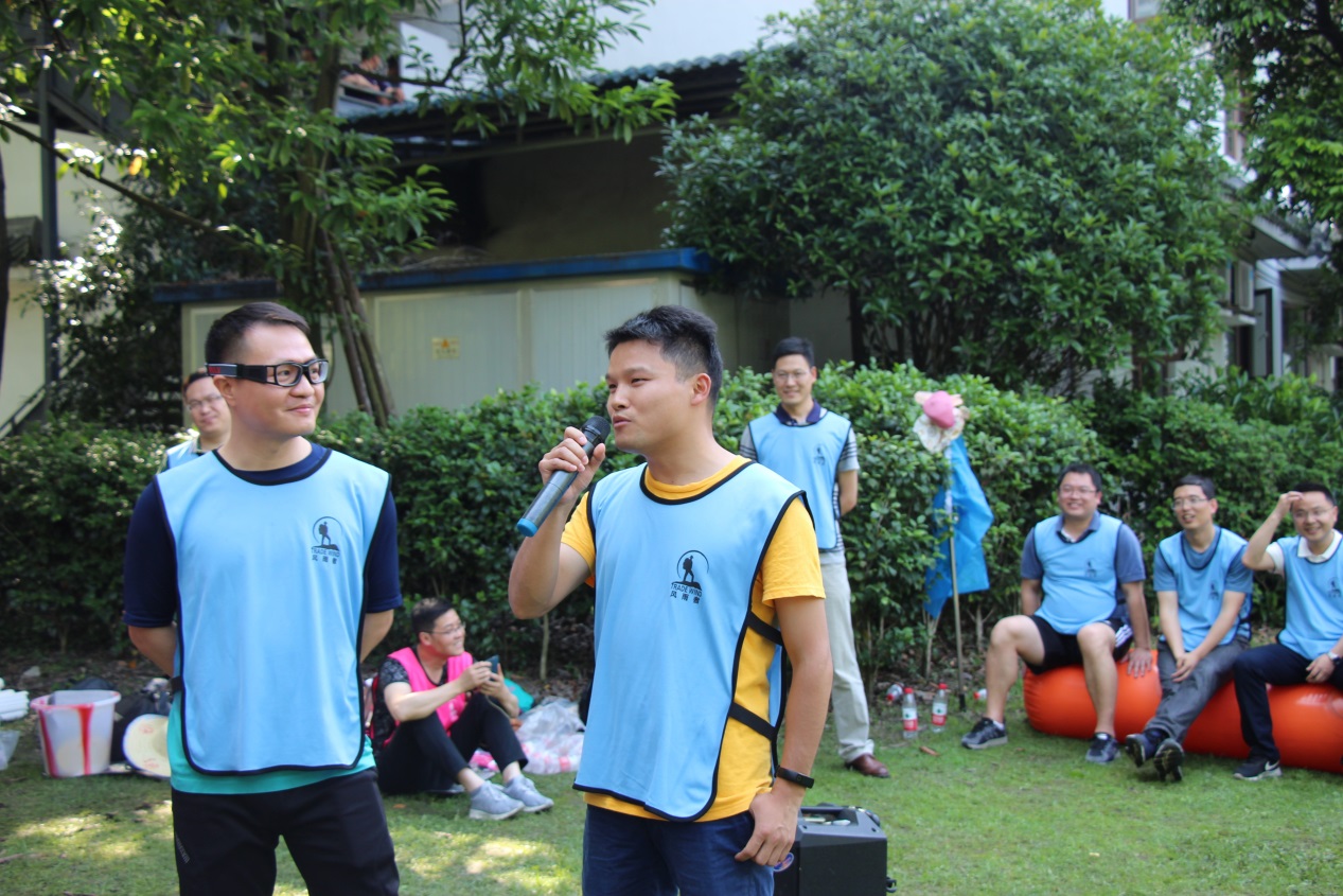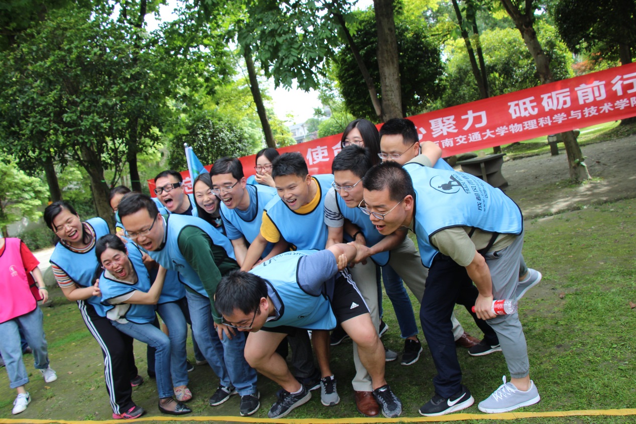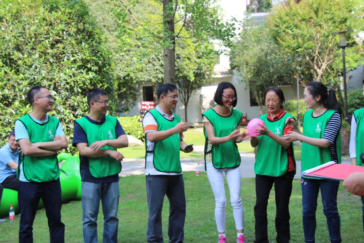 活动伊始,在素质拓展教练的组织下开展了热身运动,随即将教师们分为红、绿、蓝3个不同的团队,经各队队员讨论与设计,红队取名“亮子队”、蓝队取名“蓝精灵队”、绿队取名“绿巨人队”,并进行了四场别开生面的团队间友谊竞赛。