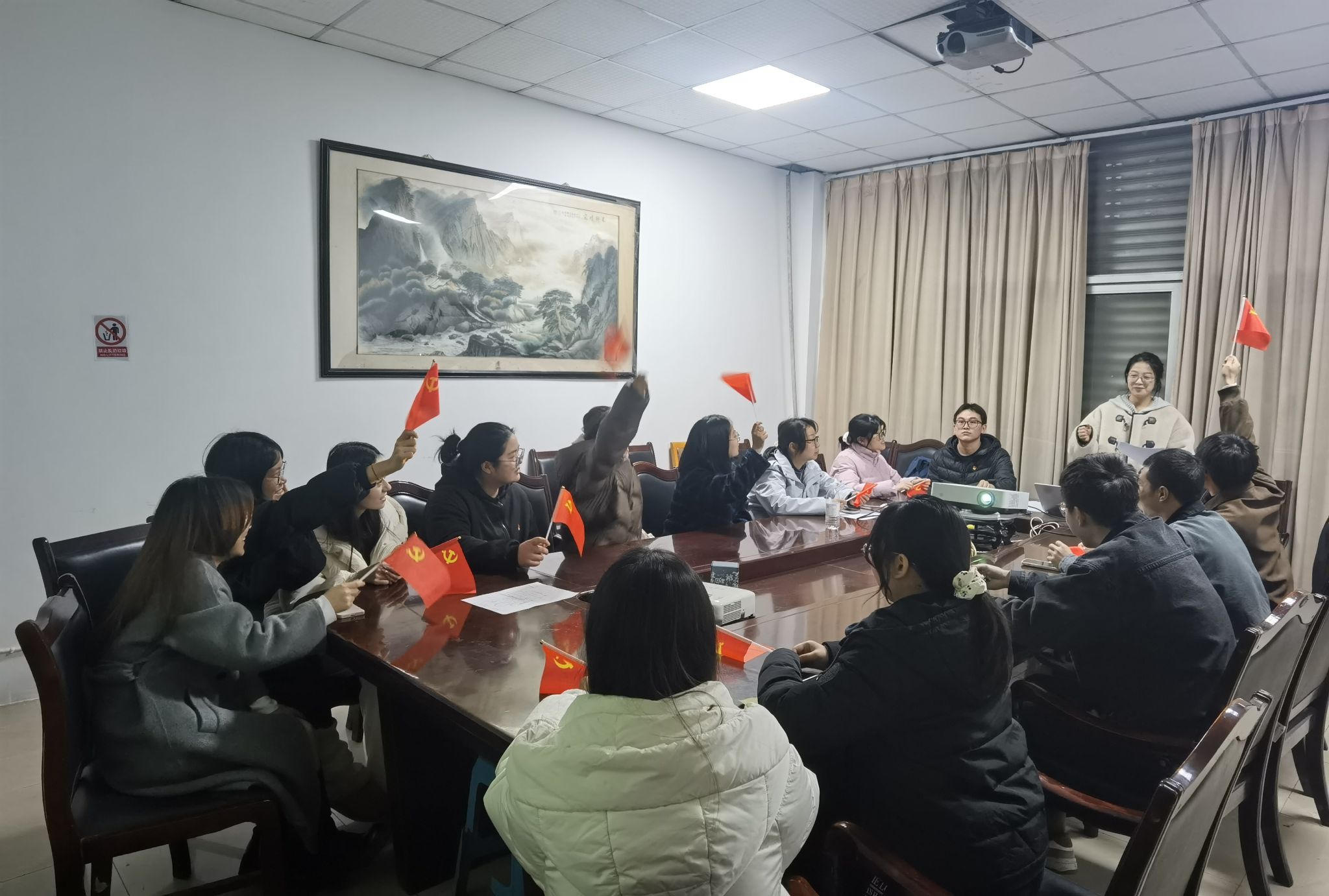 在经验分享环节,优秀党员代表袁文硕、冉桂洙、梁梓莹结合科研攻关、论文发表与学生工作实践,分享了坚守初心、服务集体的切实体会。随后,魏朝成同志作为党员代表,分享了个人在党组织培养下的成长与感悟。活动创新融入“趣味知识竞答”环节,以“党旗传递”、现场抢答等形式,生动巩固了党史理论与科学常识。