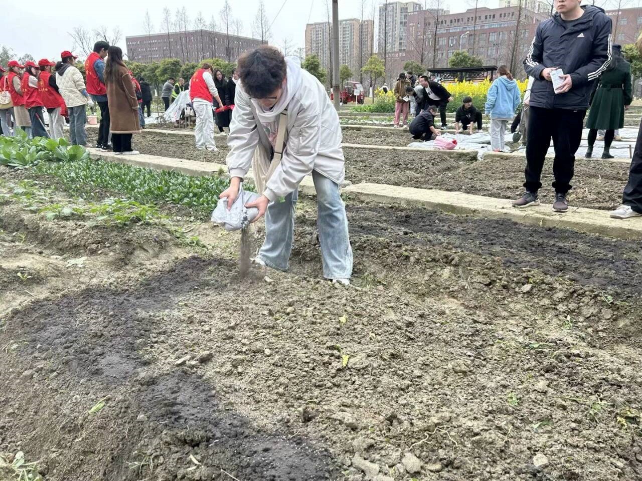 下午1600,活动准时开始。同学们有序来到种植园,在工作人员的指导下,迅速投入到各项种植实践活动中。在耕地、播种农作物区域,同学们手持农具,翻土、挖坑、播种、填土,每一个步骤都认真细致。大家相互协作,交流着种植经验,现场气氛热烈。